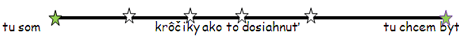 2. skúste si stanoviť reálny cieľ, kde by ste sa chceli vidieť Vy. Dôležité je stanoviť si radšej viac a menších cieľov. Stanovenie si nereálnych cieľov môže viest k sklamaniu.